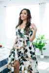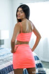 Aubry Babcock in pink tube top and mini skirt teases, joins Chloe Amour in floral dress and red thong for nude hugging and kneeling poses. O…